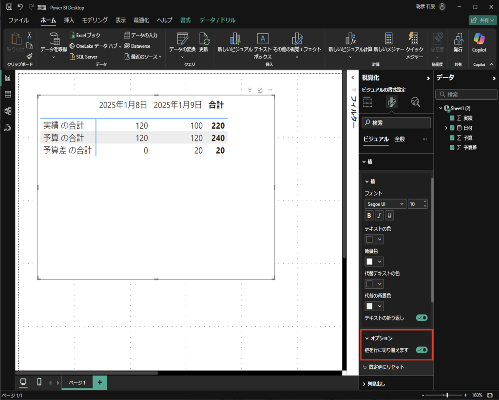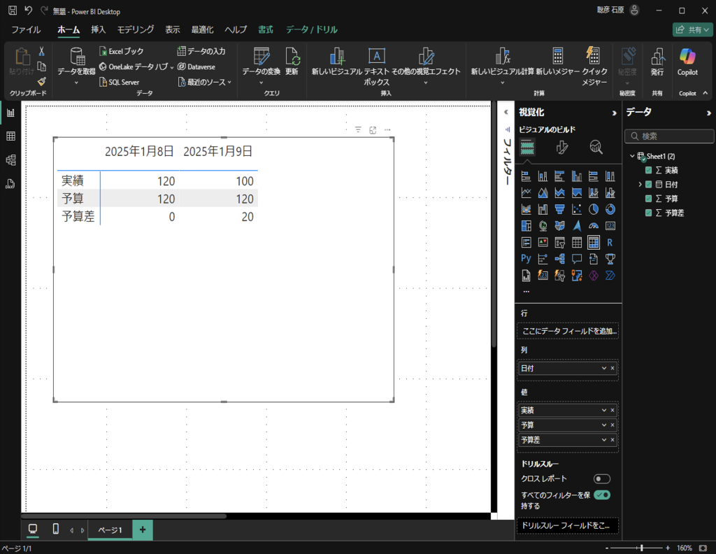 【Power BI】表で横持ちのデータを縦に表示する方法