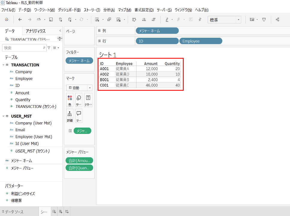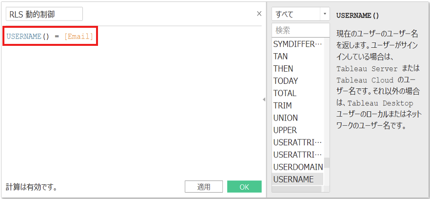静的な制御方法についてはこちら→【Tableau】RLS(ユーザーフィルター)の設定方法 – 静的制御