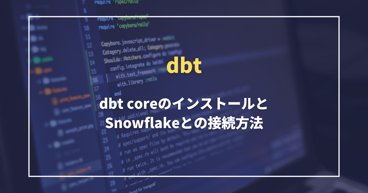 今回はdbt coreをインストールし、Snowflakeと接続するところまでの手順を試していきたいと思います。