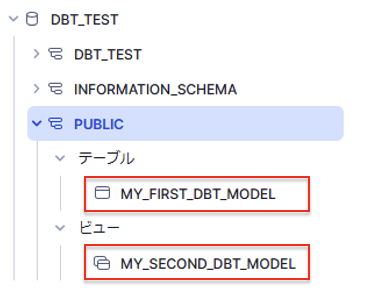 実行後にSnowflakeを確認すると、テーブルとビューが作成されていることが確認できます。