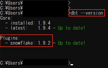 5.バージョン確認をしてSnowflakeとのプラグインがインストールされていることを確認