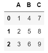 data = {'A': [1, 2, 3], 'B': [4, 5, 6], 'C': [7, 8, 9]}