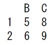 データフレーム df から行のラベルが 1 ~2で列のラベルが B~C である要素を取得する方法
