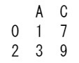 データフレーム df から行のラベルが 0と2で列のラベルが AとC である要素を取得する方法